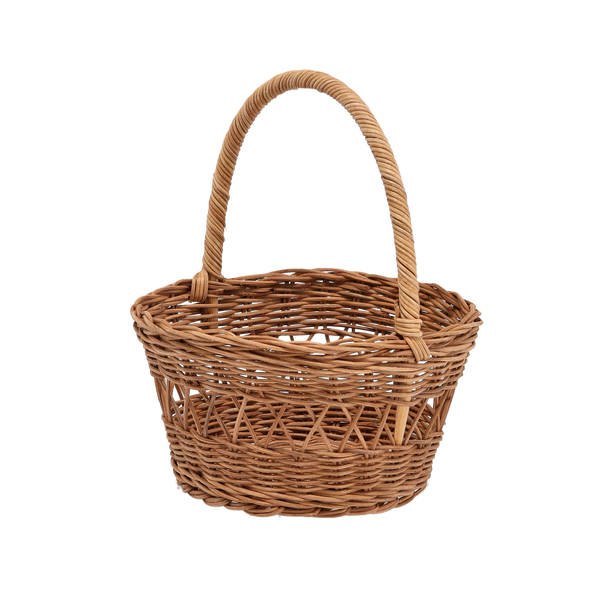 - Okrągły koszyk rattanowy o wymiarach: 21x12 cm(wysokość z uchwytem to 25 cm). Delikatne zdobienie wkoło nadaje mu ciekawego wyglądu. Będzie idealną ozdobą wiosennie przybranego, świątecznego stołu. Koszyczek idealnie sprawdzi się w Wielką Sobotę i pomieśc