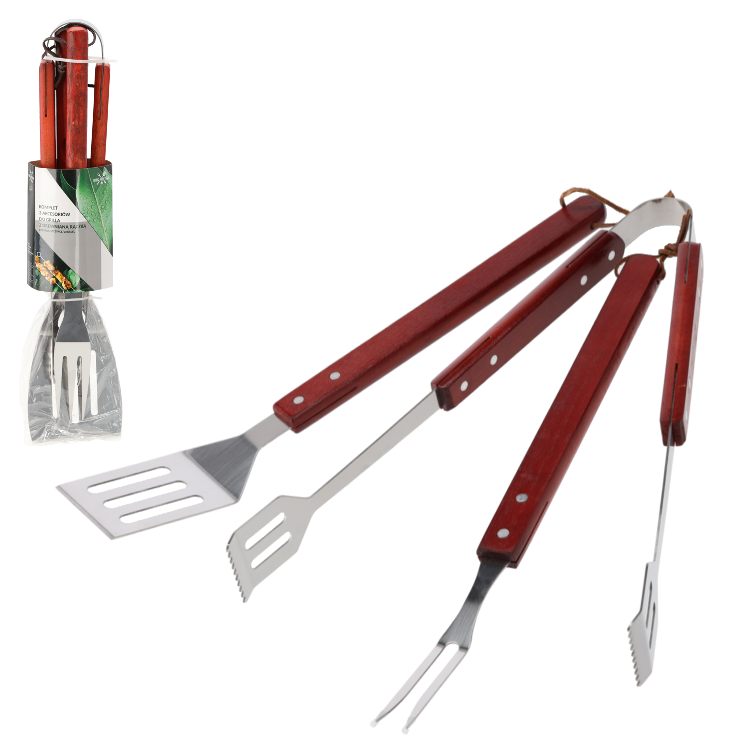 KPL. 3 AKCESORIÓW DO GRILLA Z DREWNIANĄ RĄCZKĄ 🍴