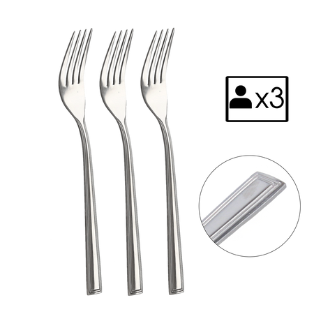 - Komplet 3 sztuk widelców wykonanych z wysokiej jakości stali nierdzewnej. Seria „Milano” to wyjątkowe kwadratowe zakończenie, które bez problemu można zaaranżować na każdym nowoczesnym stole.