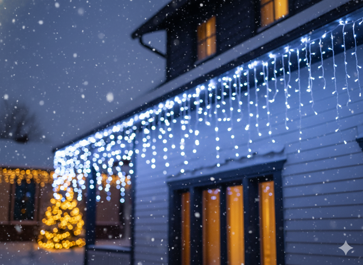 Zamień swój dom w zimową krainę czarów! Kurtyna świetlna z motywem sopli to elegancja, minimalizm i efekt WOW w jednym. 300 diod LED zimnobiałych rozbłyska na 12 metrach, a różne długości sopli dodają głębi dekoracji! ✨
