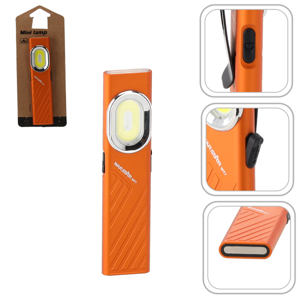 - Poręczna latarka warsztatowa COB do oświetlania stanowiska pracy, napraw w garażu, majsterkowania oraz zadań wymagających szerokiego, równomiernego światła. Lekka, kompaktowa i wygodna do codziennego użytku.