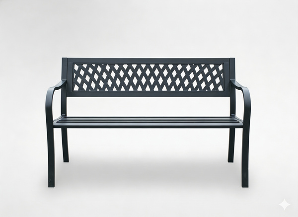 - Elegancka ławka ogrodowa Garden Line 125x53x77 cm wykonana ze stali. Solidna, odporna na warunki atmosferyczne, malowana proszkowo. Stylowe oparcie w kratę, komfortowe podłokietniki i nośność do 150 kg. Idealna do ogrodu i na taras.