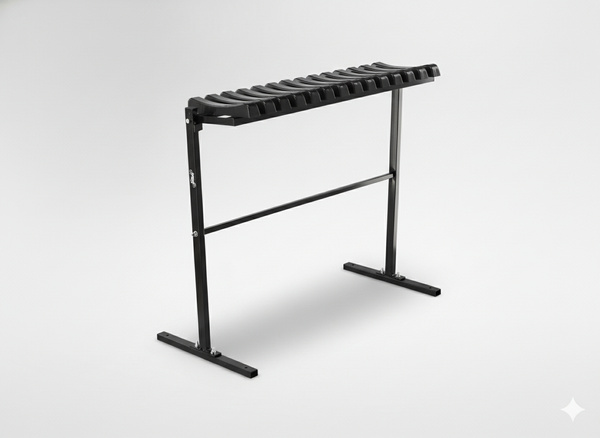 Ławeczka jest przeznaczona do wkopywania w ziemię, co pozwala na stabilne umocowanie i zapobiega przewracaniu się nawet w trudnych warunkach.