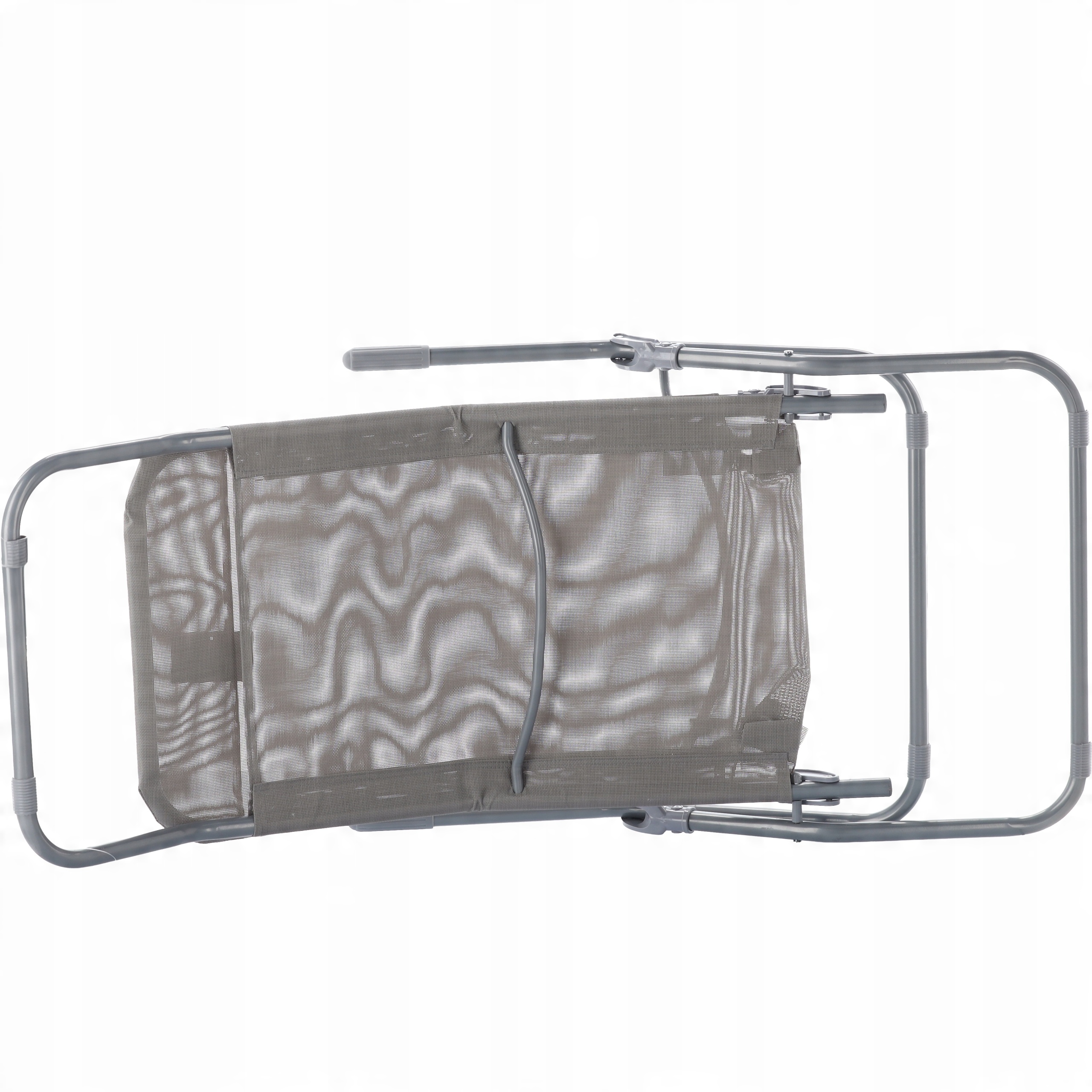 - Wytrzymała konstrukcja: Leżak wykonany jest ze stali malowanej proszkowo, co gwarantuje odporność na rdzę i długą żywotność, nawet przy intensywnym użytkowaniu. Średnica rur konstrukcyjnych wynosi 24 mm, co zapewnia stabilność całej konstrukcji.