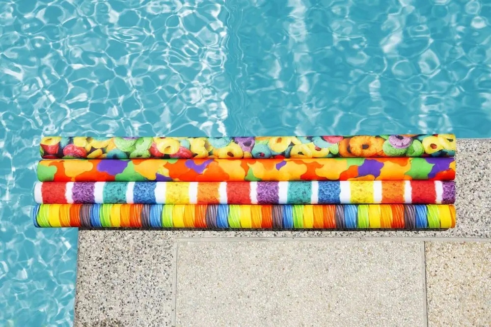 Realistyczna grafika jest drukowana na miękkim, elastycznym pokrowcu z tkaniny, a wnętrze wykonane jest z grubej pianki. Pokrycie materiałowe sprawia, że makaron jest bardziej wytrzymały niż bez tego rodzaju pokrowca. Dzieci w wieku 6-12 lat mogą pozostać na powierzchni na tych kolorowych makaronach, pływając i grając w słońcu tego lata! ☀️