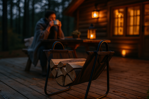 Torba o dużej pojemności i wytrzymałości ułatwia przenoszenie opału, a stabilna konstrukcja stojaka zapewnia bezpieczne przechowywanie. To idealne połączenie funkcjonalności i elegancji – nie tylko do domu, ale i na taras. 🧺