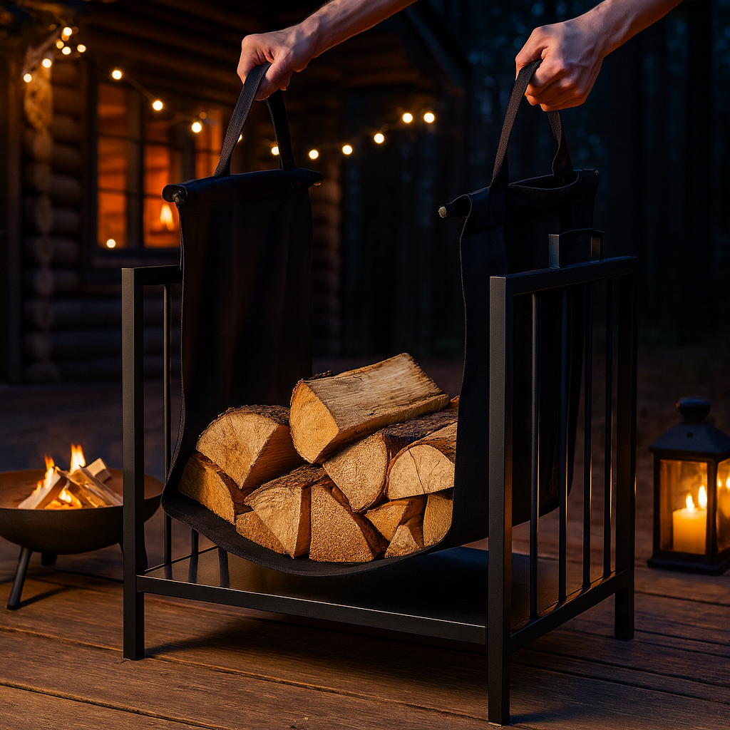 Zestaw stojaka z torbą to wygodne, bezpieczne i stylowe rozwiązanie do każdego domu z kominkiem. Pozwala utrzymać porządek, ułatwia transport drewna i pięknie prezentuje się w nowoczesnych i klasycznych wnętrzach. 🛋️🔥