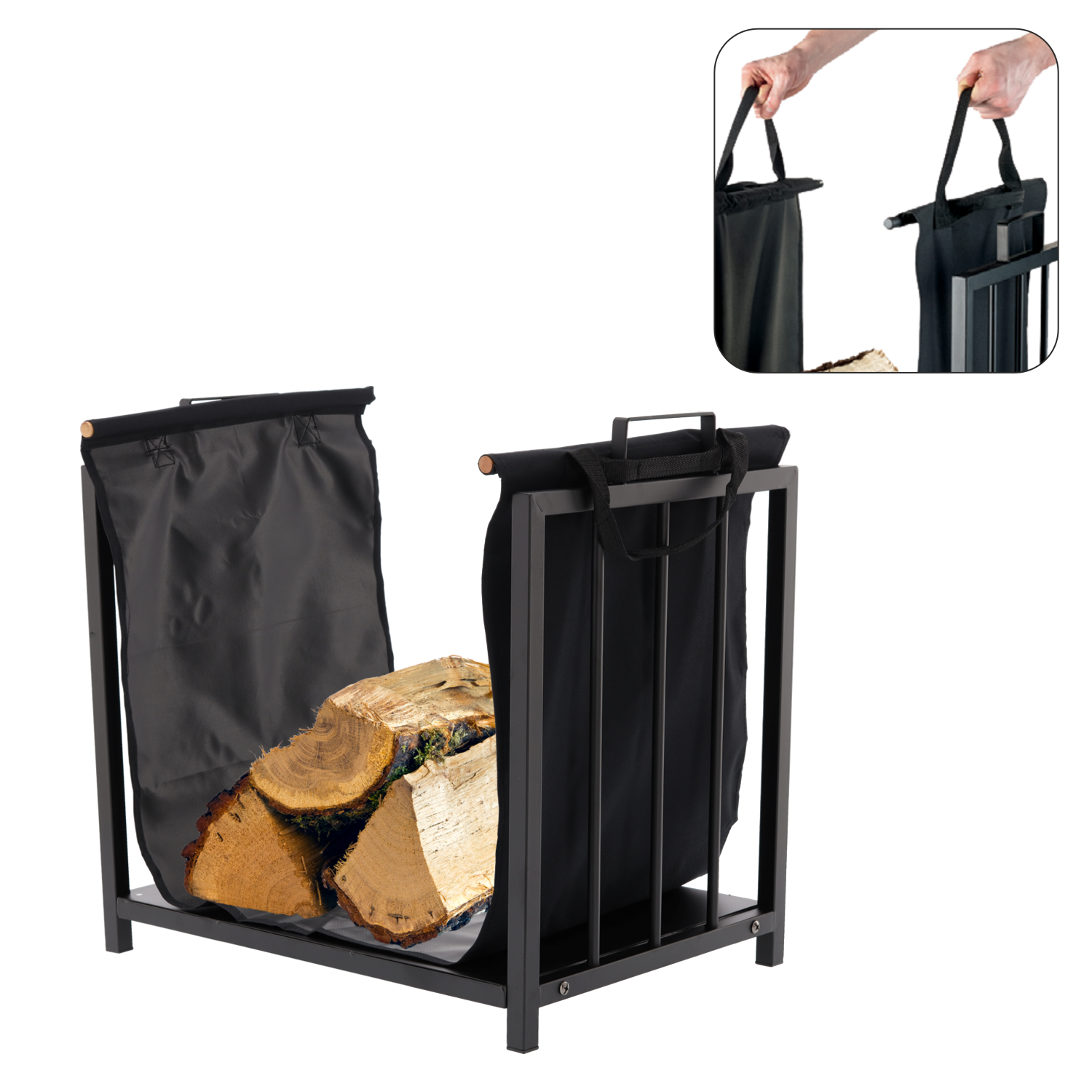 Metalowy stojak na drewno z przenośną torbą – 51 x 37 x 50,5 cm 🪵🖤