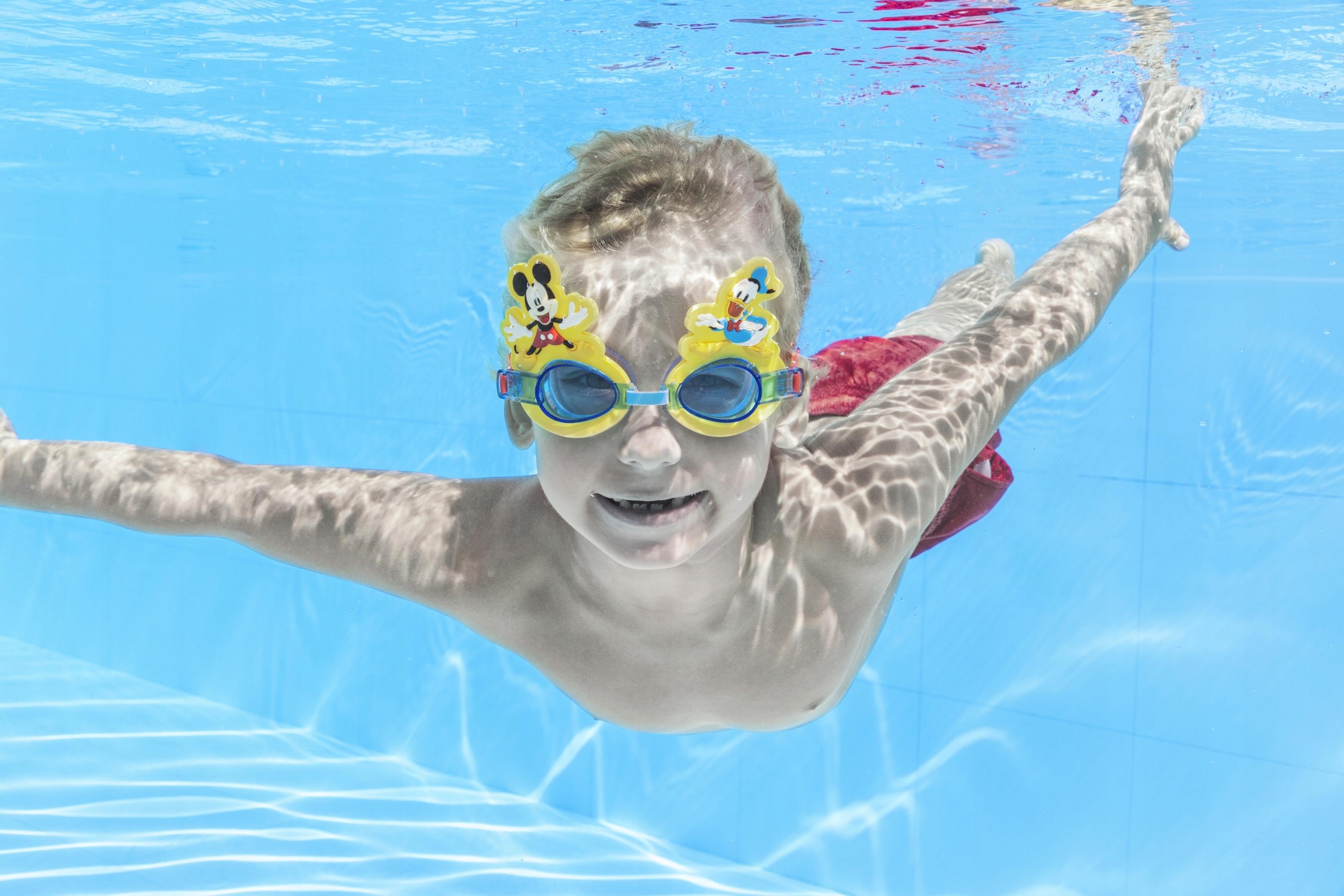 Te kolorowe okularki do pływania z motywem Mickey & Friends to idealny wybór dla dzieci od 3. roku życia. Wzory z wizerunkiem Myszki Miki i Kaczora Donalda na zewnętrznej stronie gogli sprawią, że każda kąpiel stanie się radosną, bajkową przygodą.
