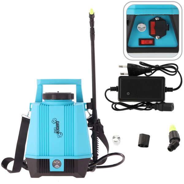 Opryskiwacz akumulatorowy to przenośne, elastyczne i wysoce skuteczne narzędzie o pojemności 5 L. Może być stosowany do ochrony roślin przed chorobami oraz szkodnikami w ogrodach, parkach, plantacjach, polach uprawnych itd.