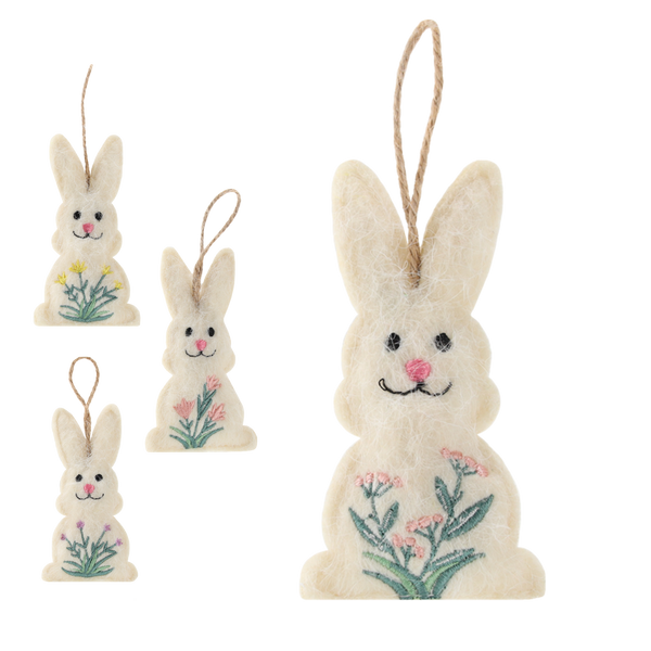 OZDOBA WIELKANOCNA - ZAWIESZKA 5 x 10,5 CM ZAJĄCZEK W KWIATY MIX 4 WZORÓW opak=12szt *9069