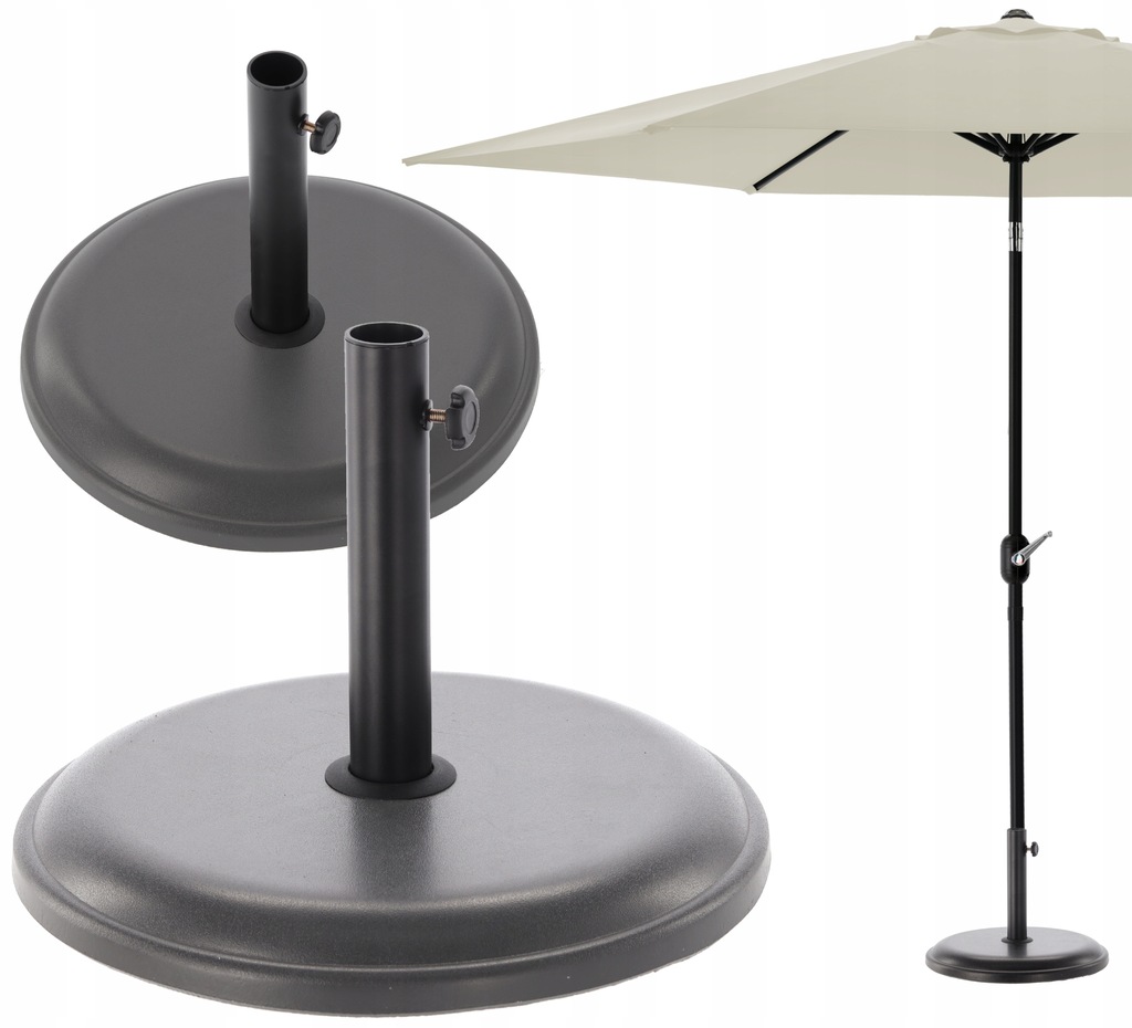 Szukasz solidnej i stabilnej podstawy pod parasol, która zapewni Ci cień i ochłodę podczas gorących dni? Nasza podstawa do parasola wykonana z wysokiej jakości betonu w eleganckim, czarnym kolorze jest idealnym rozwiązaniem. Dzięki swojej masie około16 kg oraz odpowiednio dobranym wymiarom zapewnia doskonałą stabilność dla parasoli z nogą o średnicy od30 do 38 mm.