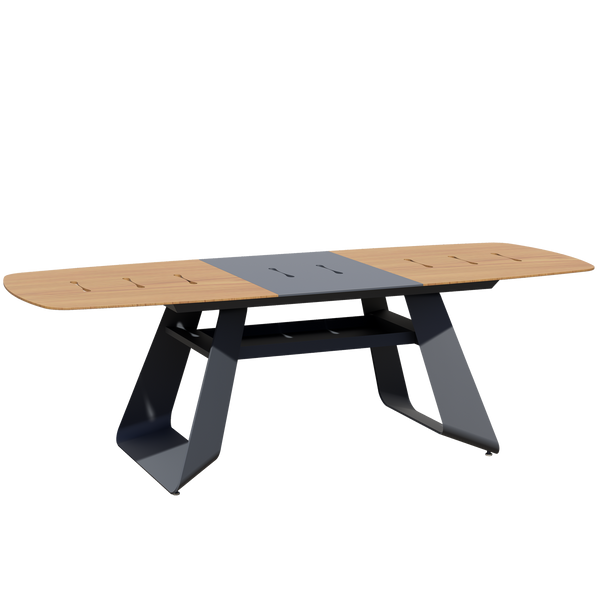 - Prostokątny aluminiowy stolik ogrodowy łączy eleganckie wzornictwo z wysoką trwałością.