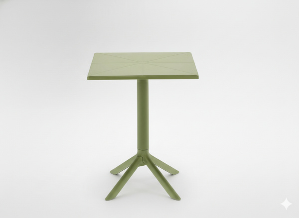 - Zielony stolik ogrodowy kwadratowy 60 x 60 cm wykonany z trwałego tworzywa sztucznego. Odporny na promieniowanie UV, stabilny i łatwy w utrzymaniu czystości. Idealny na taras, balkon i do ogrodu.