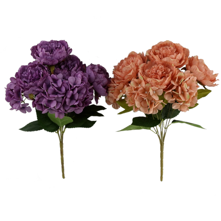 SZTUCZNA GAŁĄZKA - BUKIET PIWONII I HORTENSJI 43 CM MIX KOLORÓW *4090