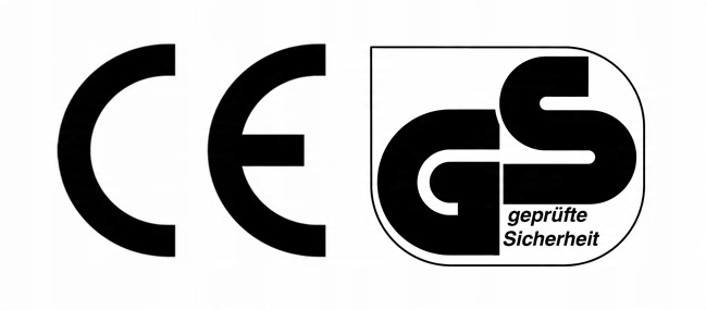 - GS – deklaracja producenta, że produkt jest zgodny z niemieckimi wymogami bezpieczeństwa. Stanowi potwierdzenie właściwości jakościowych wyrobu.
