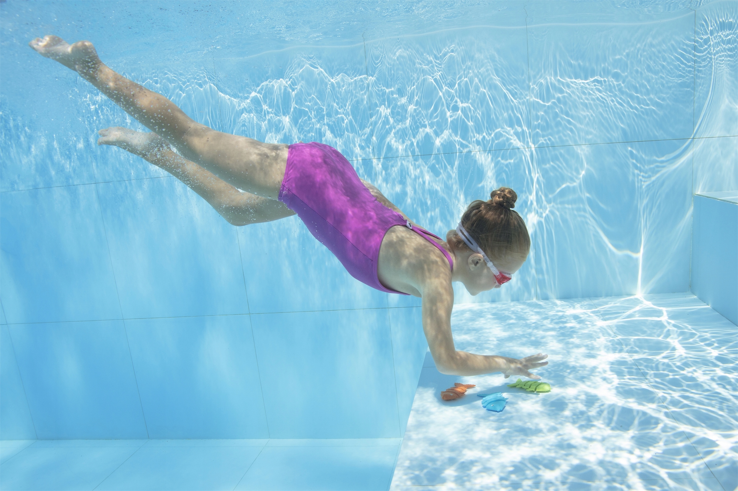 Wrzuć kolorowe rybki Bestway® Squiggle Wiggle™ do basenu i obserwuj, jak się gibają i falują w wodzie aż do samego dna! Dzieci pokochają zabawę w ich łapanie, a przy okazji będą rozwijać swoje umiejętności pływackie.
