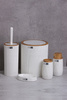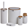 ZESTAW ŁAZIENKOWY OKRĄGŁY 5 ELEM. BIAŁY / DREWNO *7751