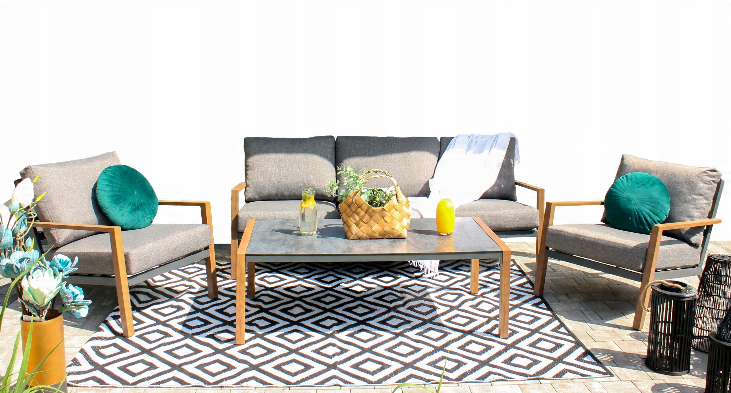 Nowoczesny i elegancki zestaw mebli ogrodowych, który doskonale sprawdzi się w ogrodzie, na tarasie lub w przestrzeni wypoczynkowej. Aluminiowa konstrukcja malowana proszkowo zapewnia trwałość oraz ochronę przed korozją, a wygodne poduszki gwarantują komfort użytkowania.