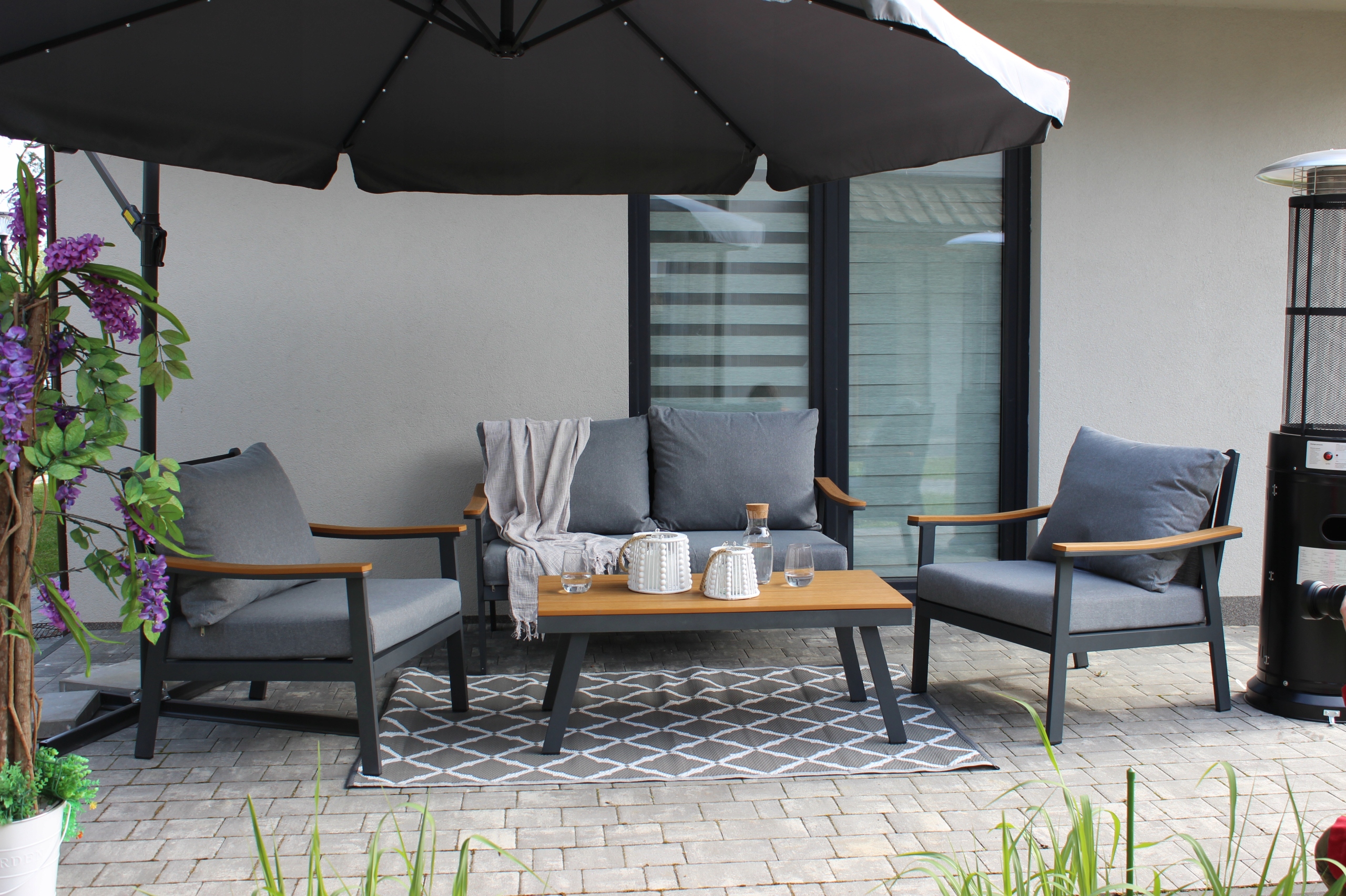 Stylowy i nowoczesny zestaw mebli ogrodowych, który doskonale sprawdzi się na tarasie, balkonie, w ogrodzie lub strefie relaksu przy domu. Dzięki solidnej aluminiowej konstrukcji oraz wygodnym poduszkom zapewnia komfortowy wypoczynek na świeżym powietrzu.