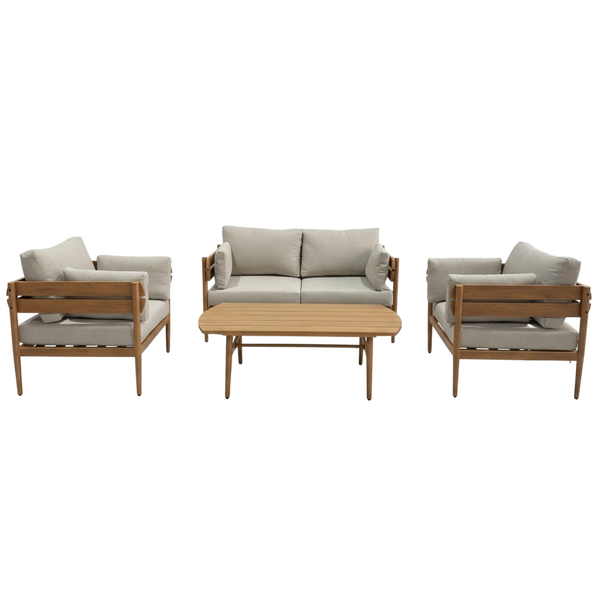 ZESTAW MEBLI ALUMINIOWYCH "PODGORICA" (SOFA + 2 FOTELE + STOLIK) BRĄZOWY + BEŻOWE PODUSZKI *8208