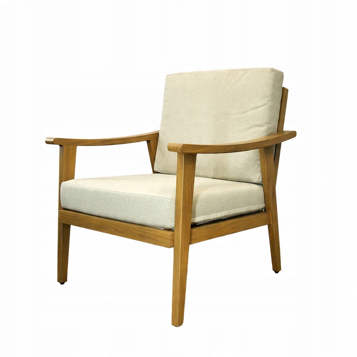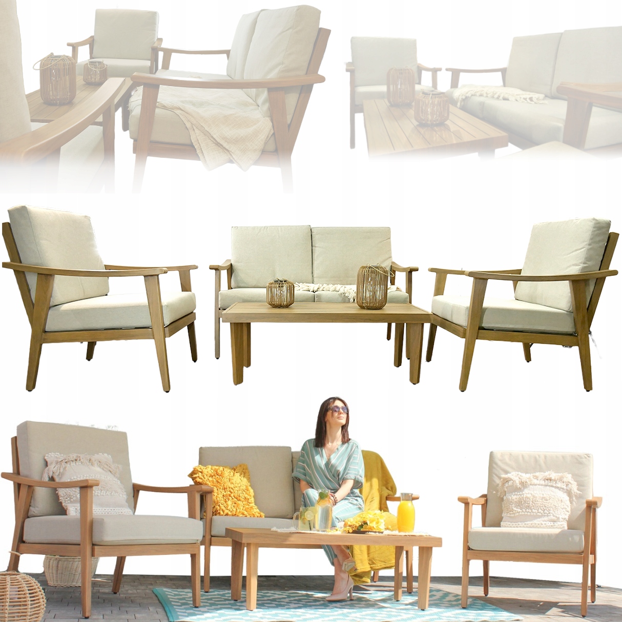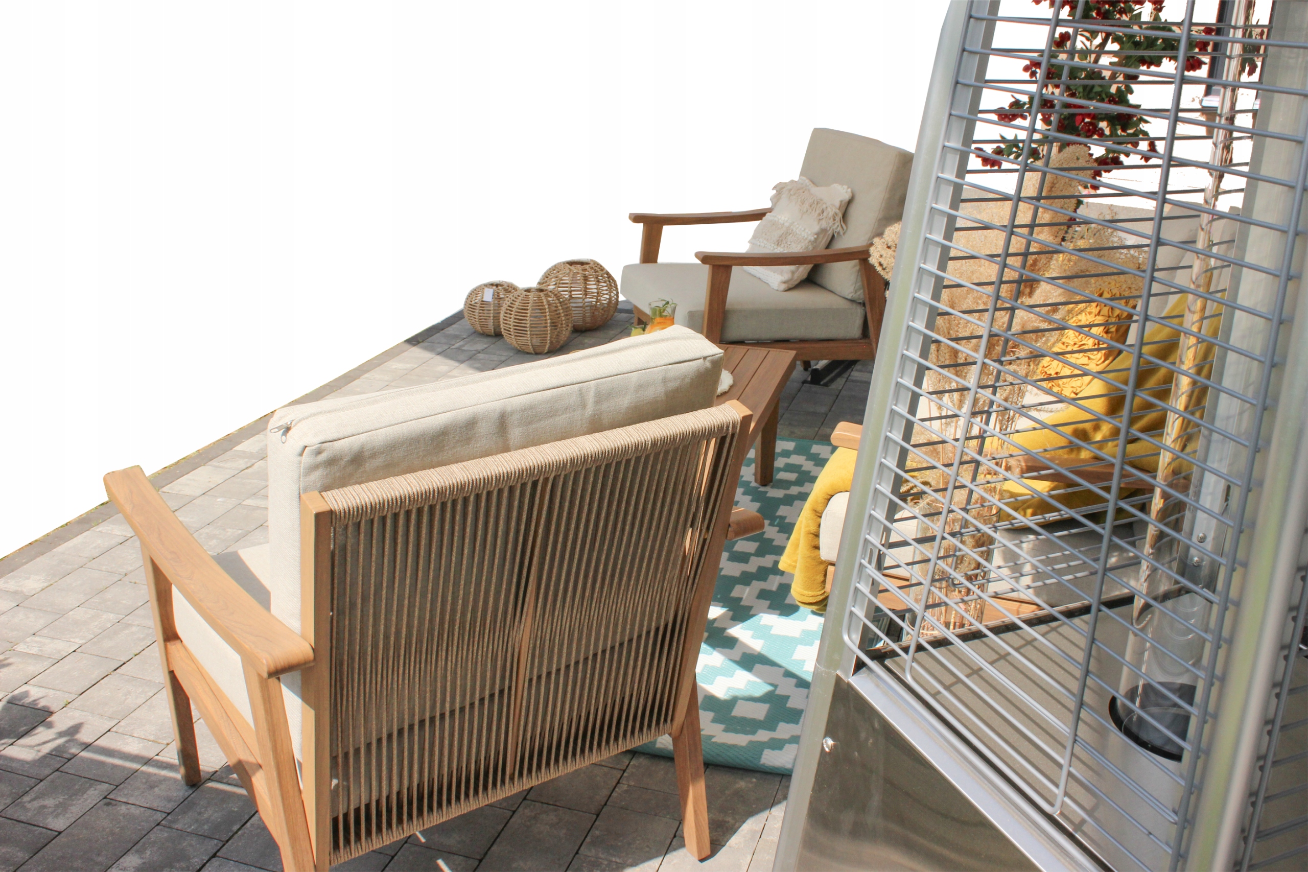 Nowoczesny i stylowy zestaw mebli aluminiowych, który idealnie sprawdzi się na tarasie, w ogrodzie lub w strefie wypoczynkowej. Konstrukcja w kolorze drewna oraz elegancka plecionka z liny na oparciu nadają zestawowi wyjątkowy charakter. Wygodne poduszki o grubości 10 cm zapewniają wysoki komfort użytkowania.