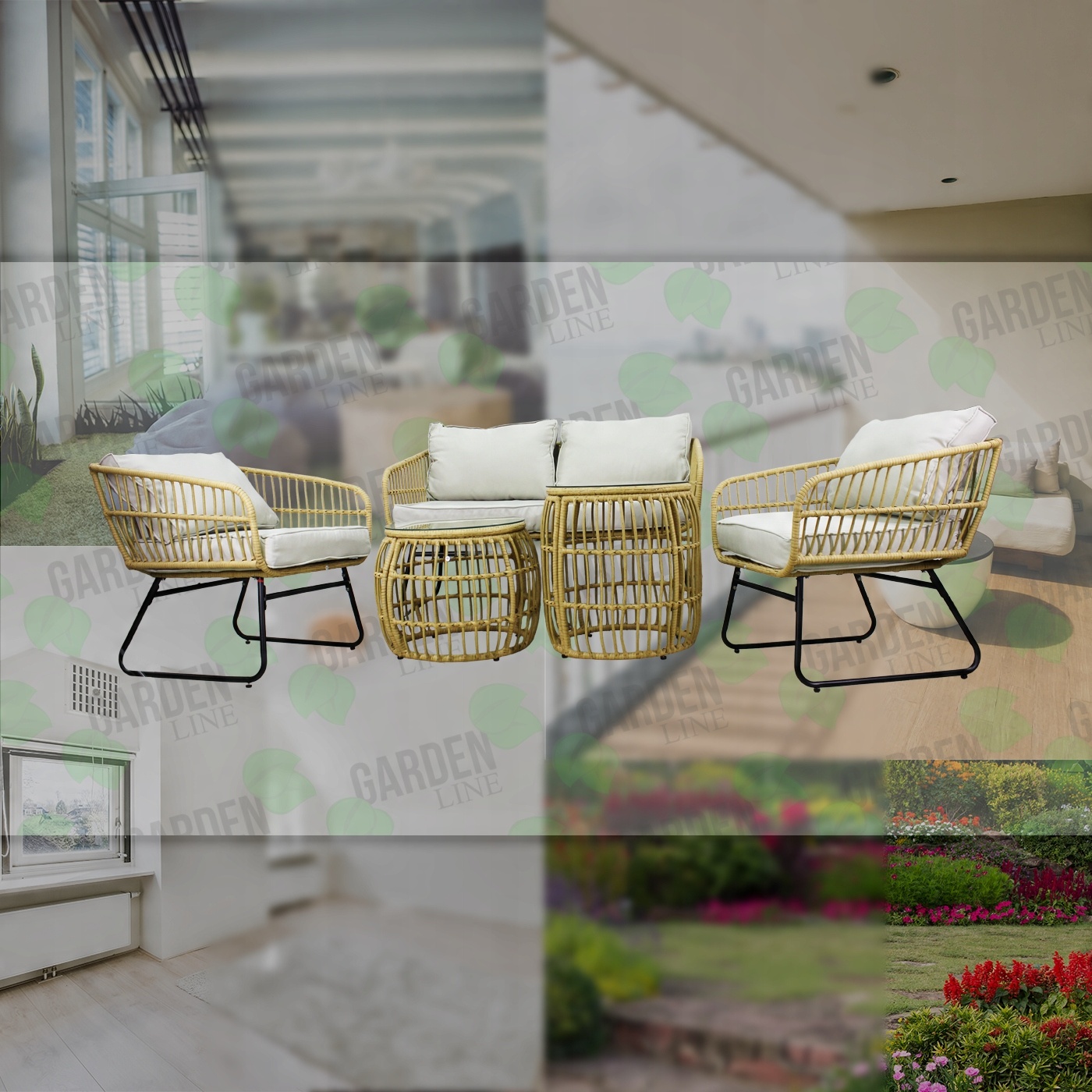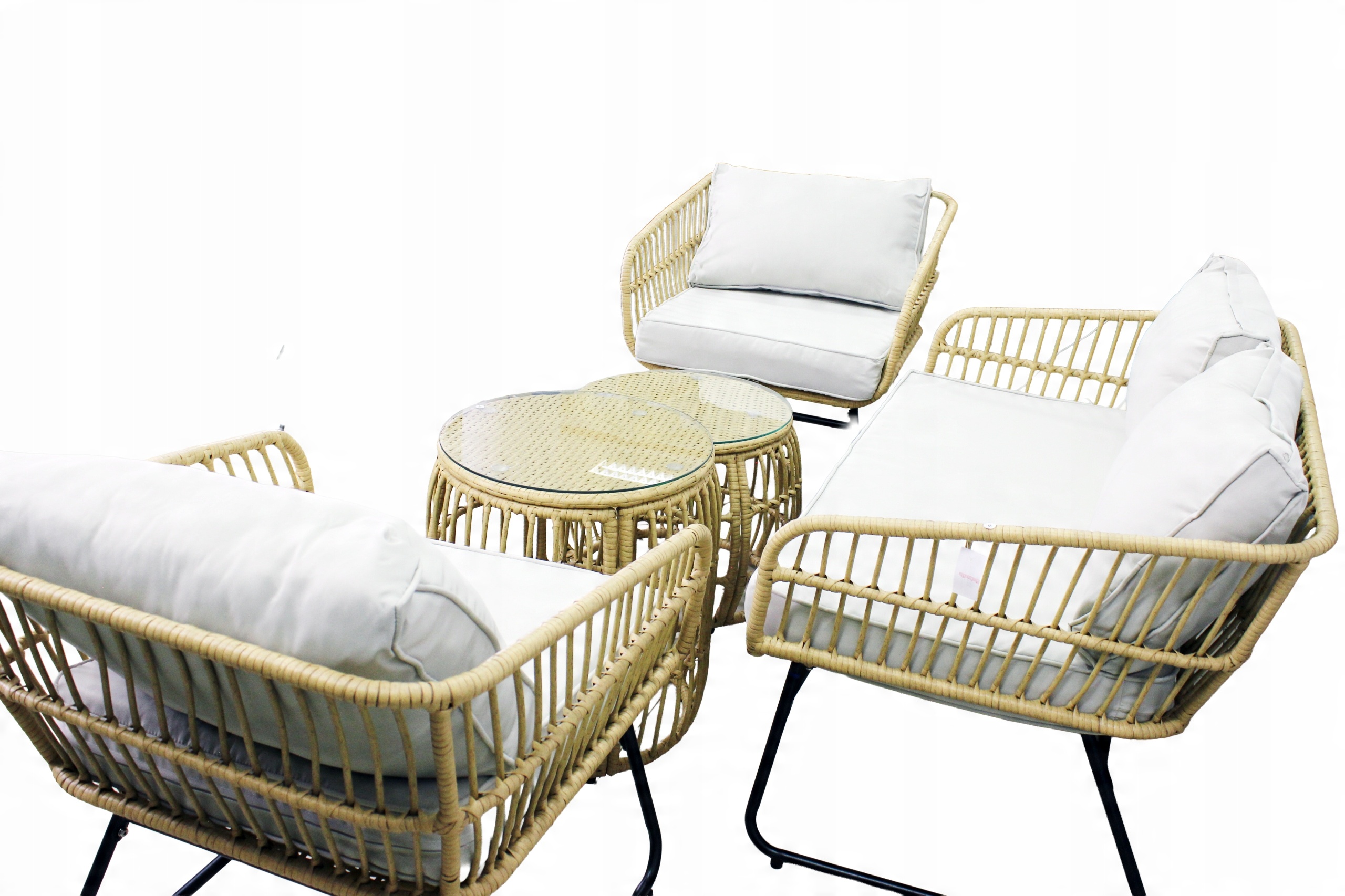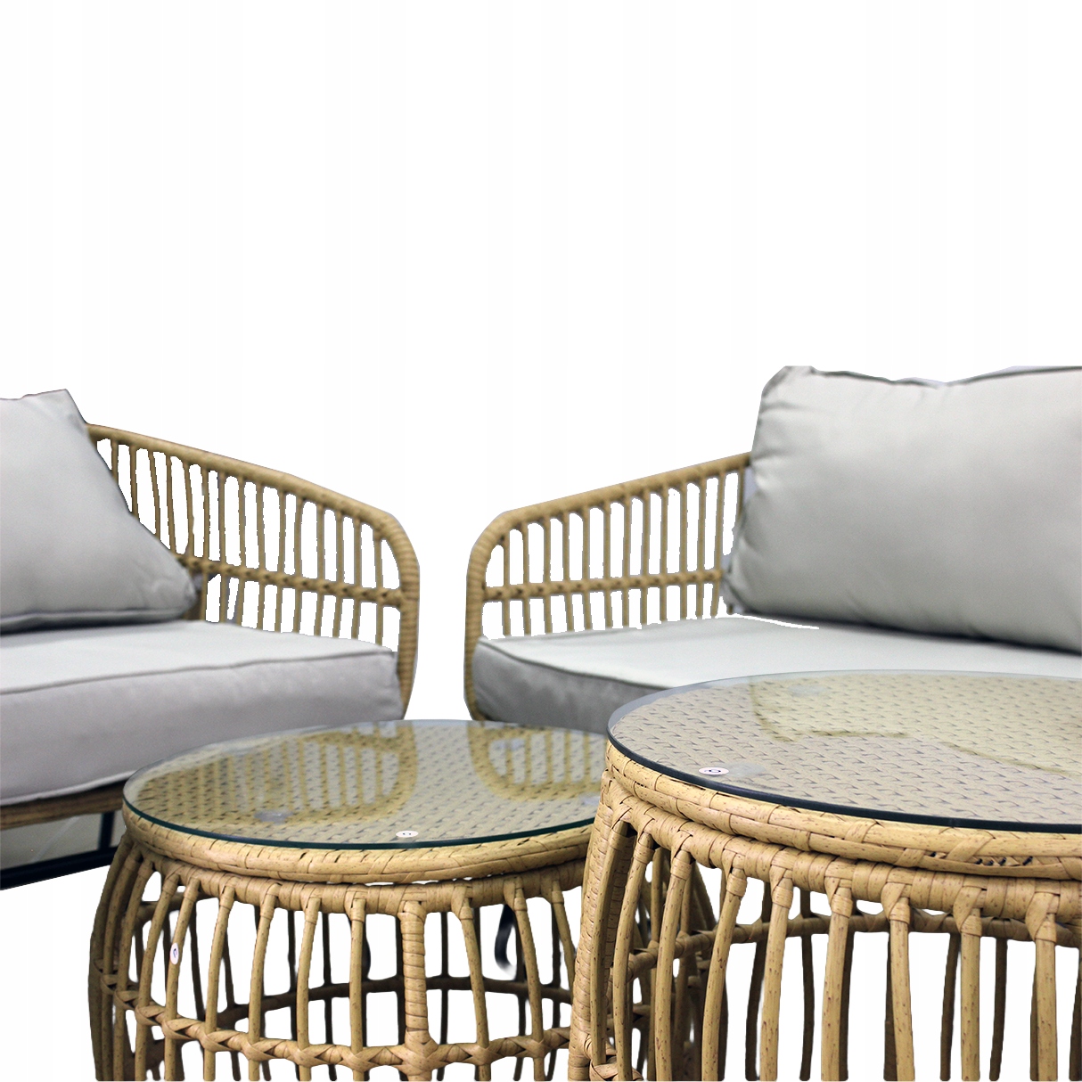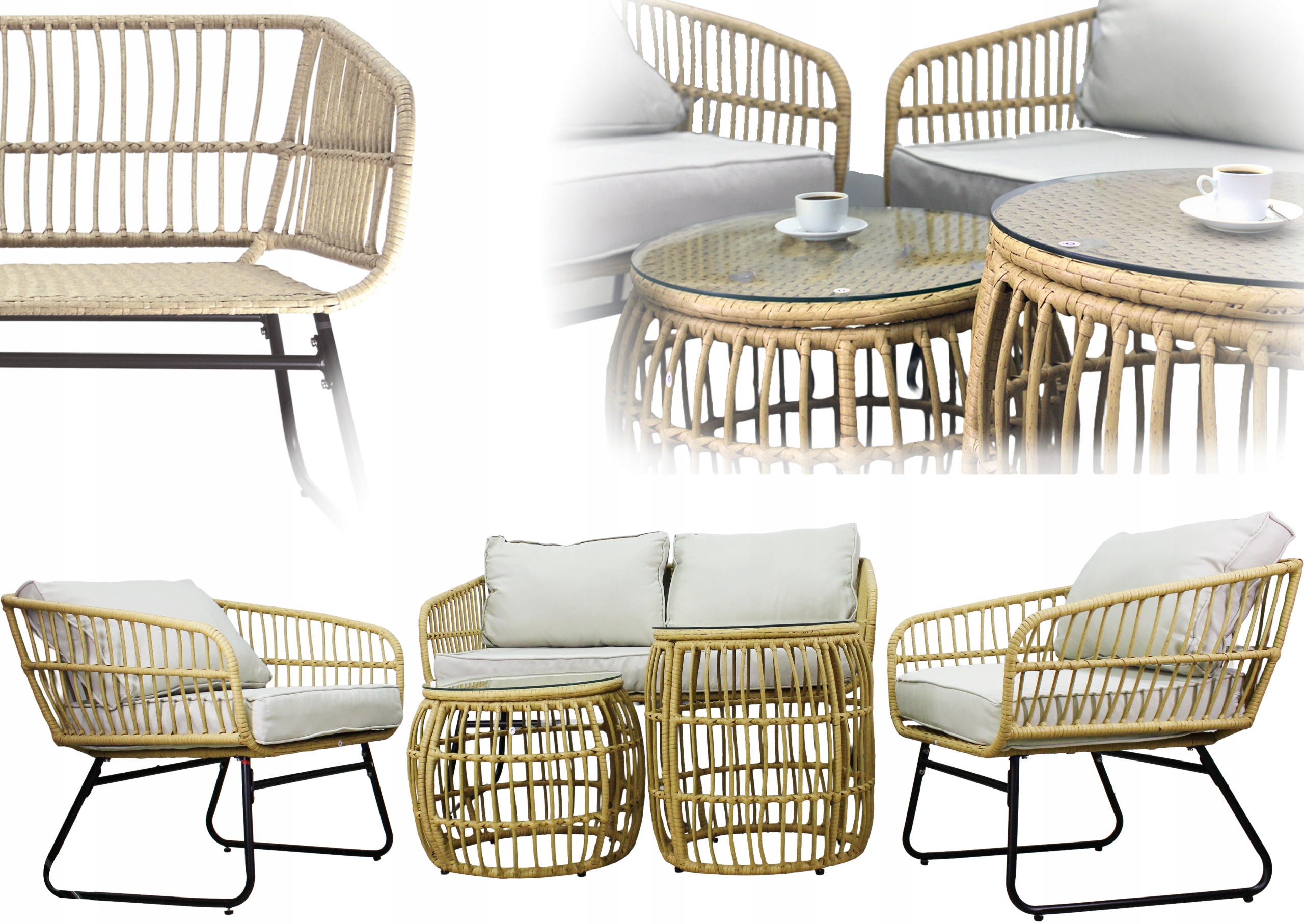 ✅ ZESTAW MEBLI OGRODOWYCH – SOFA, 2 FOTELE, 2 STOLIKI ZE SZKŁEM
