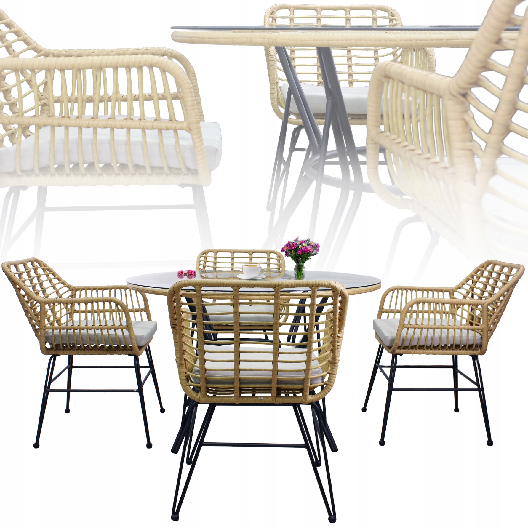 ✅ ZESTAW MEBLI OGRODOWYCH – STÓŁ + 4 KRZESŁA Z PODUSZKAMI