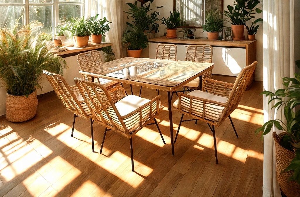 - Rattan nie wymaga konserwacji – wystarczy przetrzeć wilgotną ściereczką 🧴