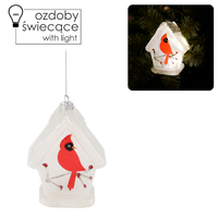 VÁNOČNÍ SKLENĚNÁ OZDOBY 9 x 7 x 12 CM LED - PTÁČEK V KRMÍTKU balení=6ks *2737