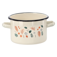 GARNEK EMALIOWANY 2 L 16 CM KREMOWY LIŚCIE *2341