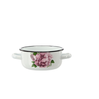 RONDEL EMALIOWANY Z DWOMA USZAMI 1,5 L 16 CM BIAŁY PIWONIA LAURA *9136