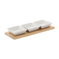 KPL. DO SERWOWANIA PRZYSTAWEK - 3 MISECZKI KWADRATOWE PORCELANOWE Z BAMBUSOWĄ DESKĄ 28x10x3CM *7231