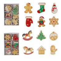 Set de 18 ornamente de Crăciun din lemn pentru suspendare, amestec de 3 modele maro închis, ambalaj=12 buc *8990