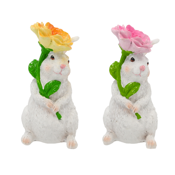 FIGURINĂ DECORATIVĂ - IEPURAȘ CU FLOAREA 7 x 8 x 14,7 CM MIX 2 CULORI pachet=4 buc *8227