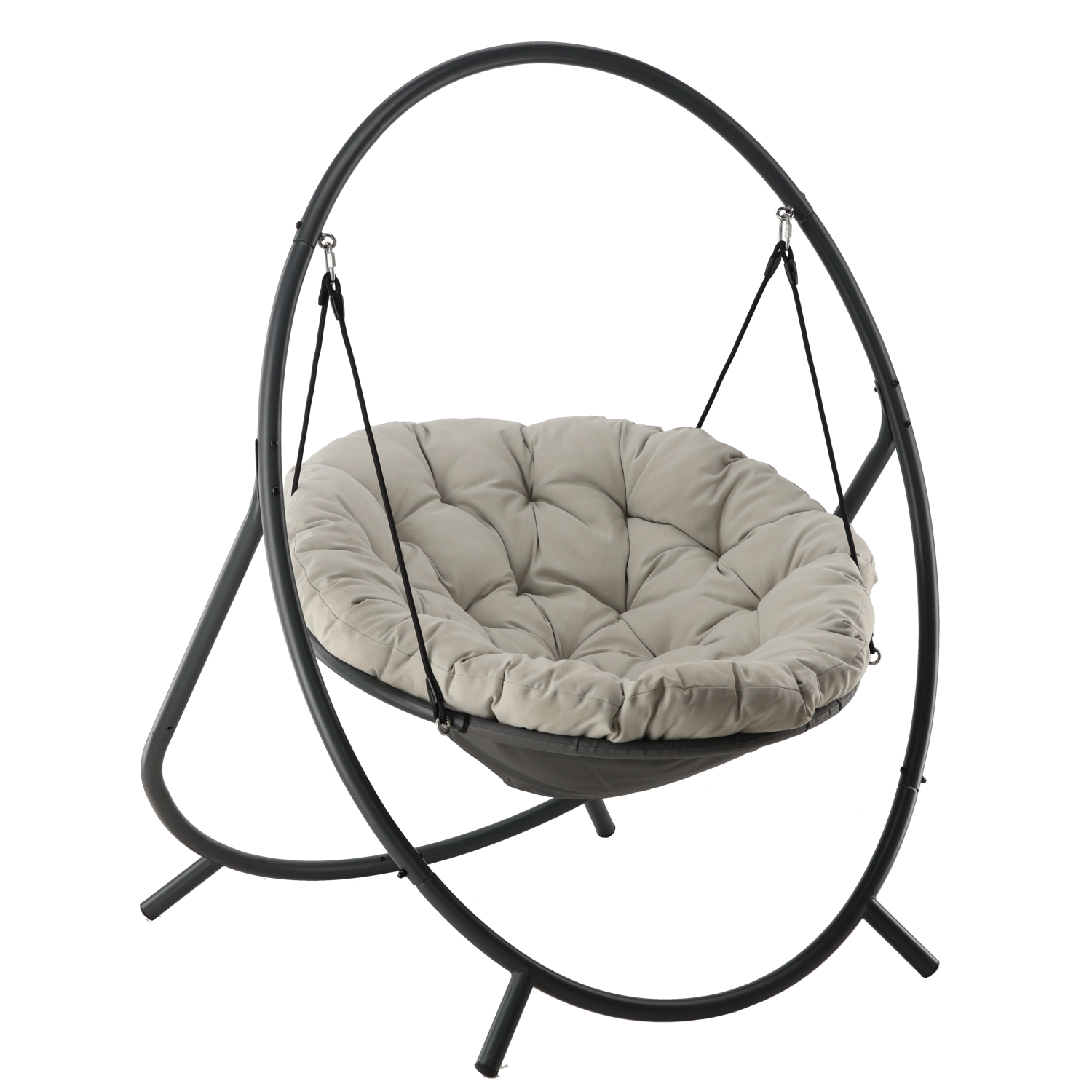 FOTEL WISZĄCY PATIO - JASNO BEŻOWA PODUSZKA, SZARA RAMA 🪑