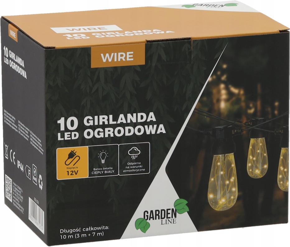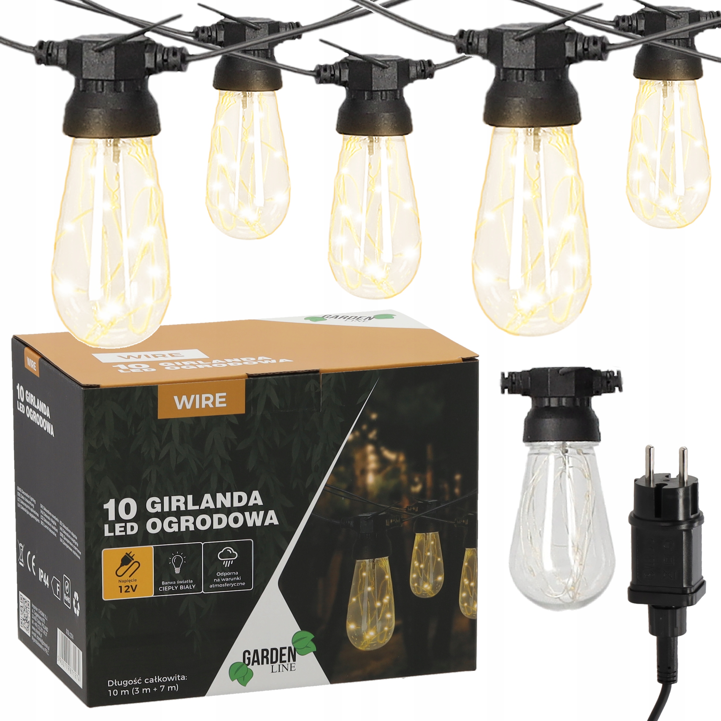 GARLANDA DE GRĂDINĂ 12 V ÎND. 3 + 7 M CABLU 10 LED ALB CALD CU FIXURI *1274