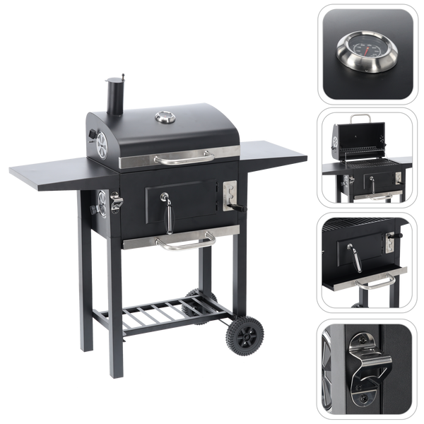 GRĂTAR PE CARBUNI "INFERNO" CU capac, grătar din fontă și roți 109 x 46 x 106,5 CM *5214