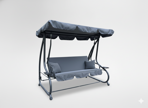 Stabilna stalowa konstrukcja, grube poduszki, sprężynowe zawieszenie i regulowany daszek sprawiają, że możesz się bujać lub spać na świeżym powietrzu w pełnym komforcie. A to wszystko z udźwigiem aż 300 kg! 🌿