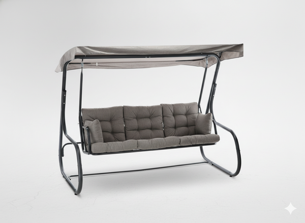 HUŚTAWKA OGRODOWA 3-OSOBOWA Z FUNKCJĄ LEŻANKI – SZARY MELANŻ 🛋️