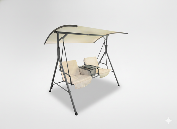HUŚTAWKA OGRODOWA DWUOSOBOWA 170 x 110 x 165 CM BEŻOWA Z PODSTAWKĄ NA KUBKI