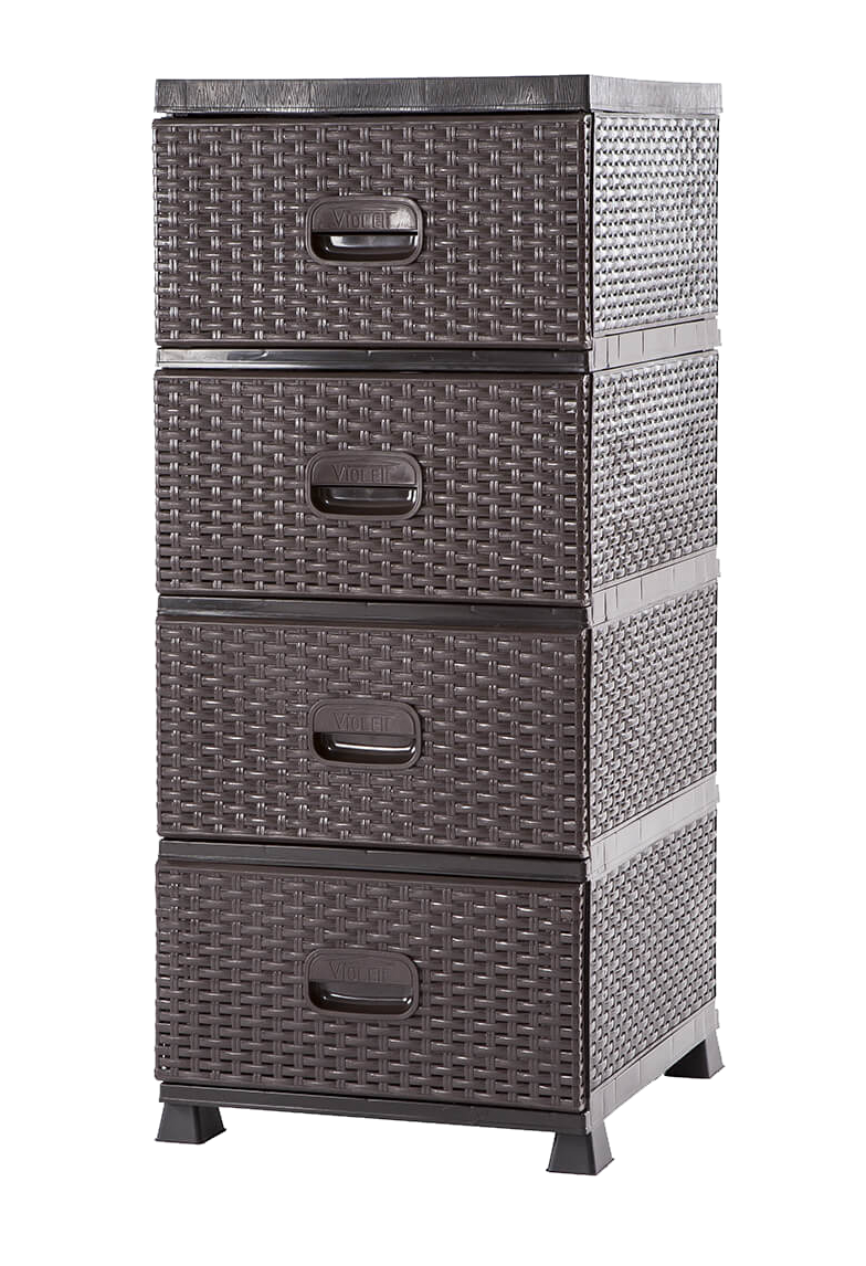 KOMODA PLASTIKOWA Z 4 SZUFLADAMI BRĄZOWA 38 x 45 x 90 cm RATTAN *9436