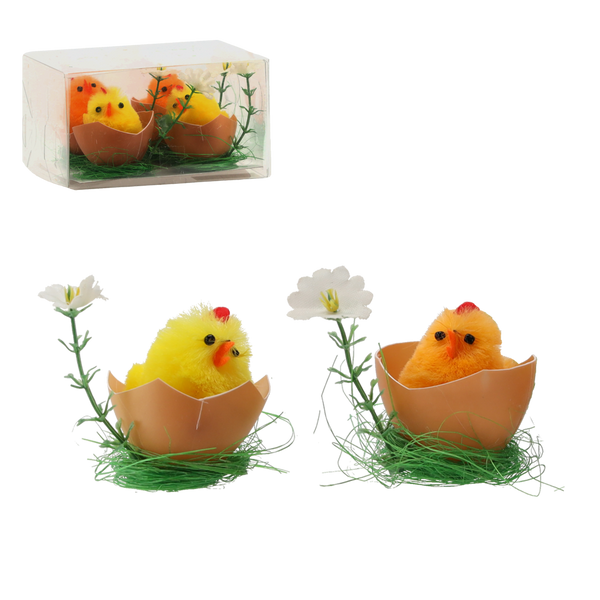 KPL. 4 DECORAȚIUNI DE PAȘTE - PUI ÎN COAJĂ 9,5 x 7 x 5,5 CM MIX DE CULORI *9373