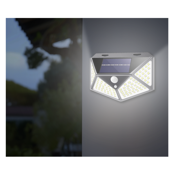 LAMPĂ SOLARĂ 13,5 x 5,5 x 9,7 CM APARAT DE PERETE CU SENZOR DE MIȘCARE 100 LED ALB RECE *6124