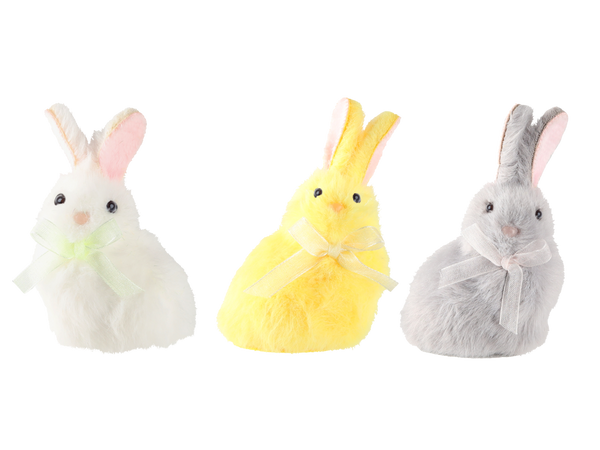 ORNAMENT DE PAȘTE - CULOARE 6 x 8 CM IEPURE CU FUNDIȚĂ MIX 3 CULORI ambalaj=12buc *8956