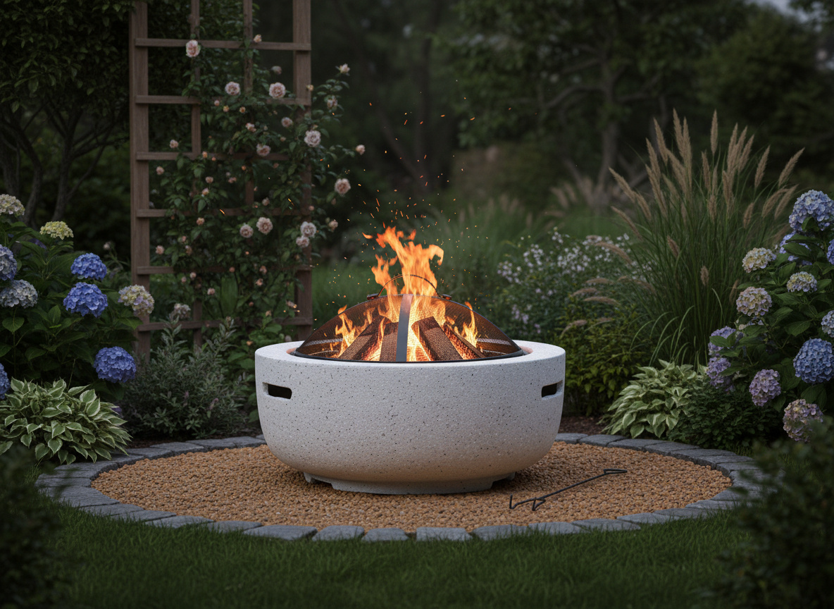 To stylowe palenisko ogrodowe z pokrywą i pogrzebaczem zapewni ciepło i wyjątkową atmosferę w ogrodzie – idealne na chłodniejsze wieczory, spotkania z przyjaciółmi i rodziną.