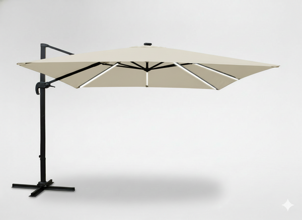PARASOL OGRODOWY 3 x 4 M BEŻOWY "ROMA" Z POKROWCEM Z LED