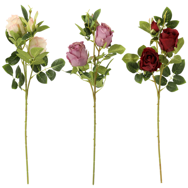 RAMURĂ ARTIFICIALĂ - RUJĂ CU TREI FLORI 66 CM MIX CULORI ambalaj=36buc *4137