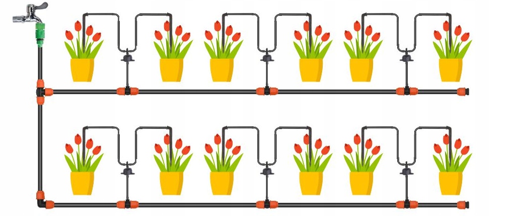 - ✔️ Ciągłe i równomierne podlewanie sprzyja rozwojowi roślin