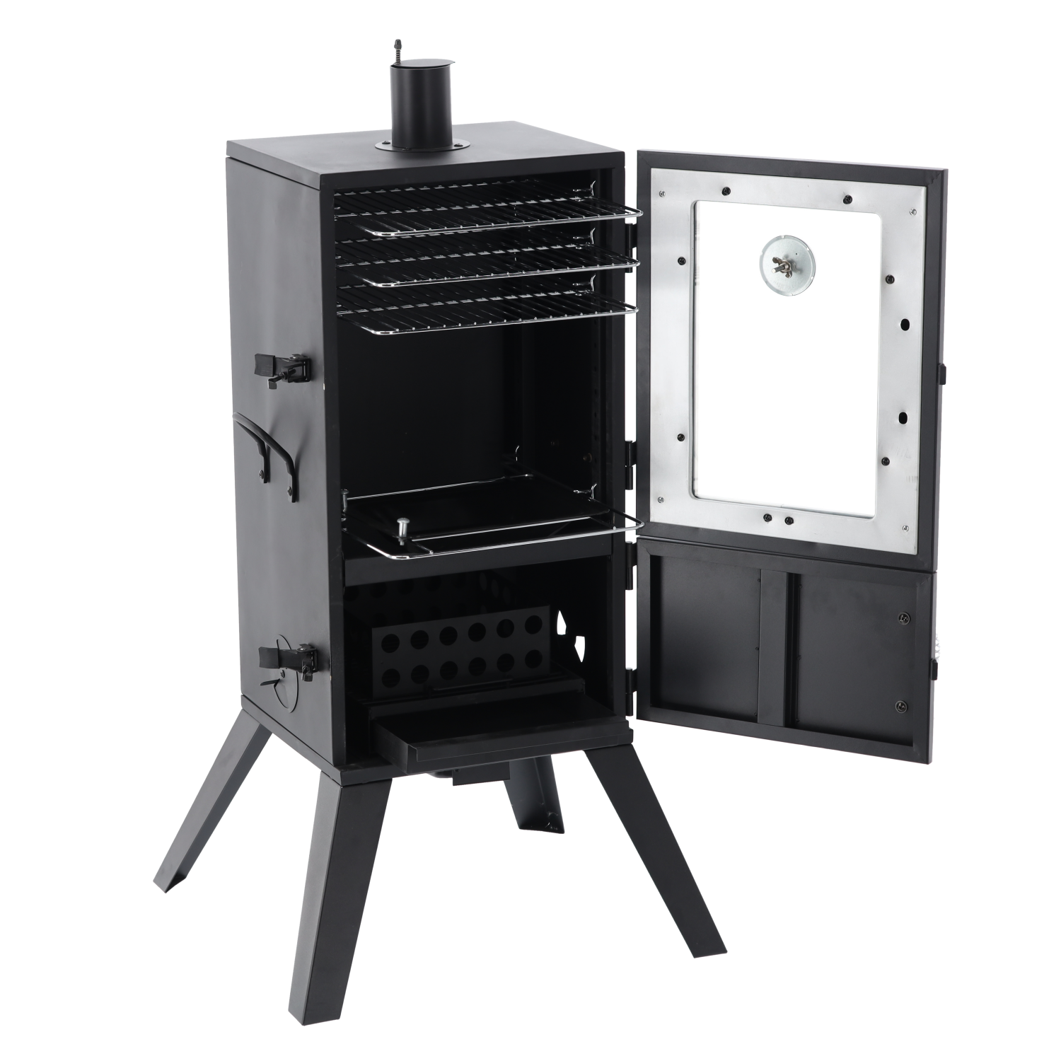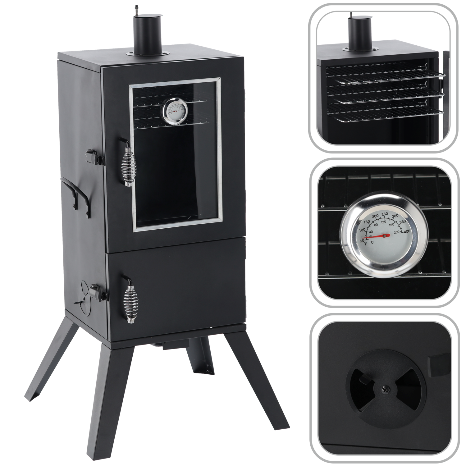 - Wbudowany termometr i drzwiczki z blokadą – pełna kontrola nad procesem wędzenia 🌡️